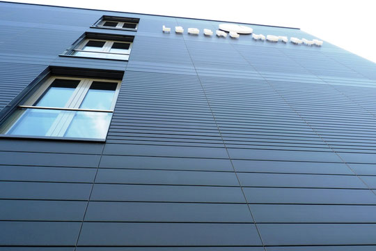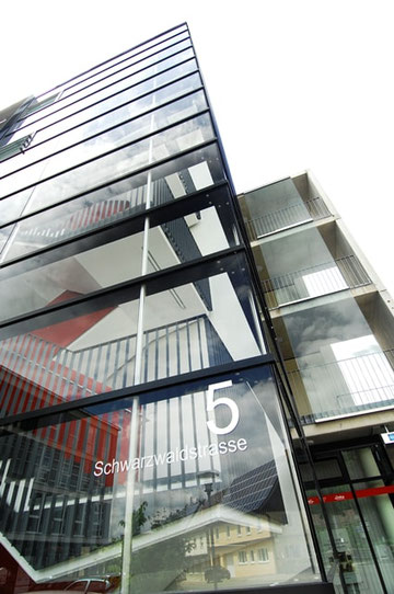 Die Tuttlinger Höfe zeigen sich in einem unregelmäßigen und lebendigen Kleid. Die bodengleichen, vertikalen Fensterelemente werden über die Geschosse hinweg versetzt und korrespondieren spannungsvoll mit den ebenfalls vertikal versetzten Loggien.